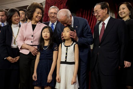 In his capacity as president of the Senate, Biden is tasked with swearing in new and returning members. After administering the formal oaths, the vice president likes to hang around for a mock ceremony and take pictures, selfies included, with the senators and their families. The ritual has become one of the must-watch events of any new Congress, as the quips and Bidenisms show the vice president in his element.