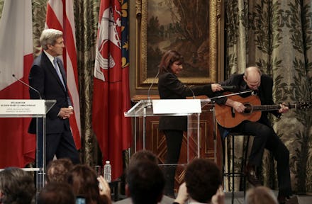 Watch John Kerry Apologize to France with a Sweet but Strange Song by James Taylor