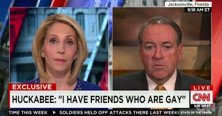 That's only a little less dehumanizing than, say, Rick Santorum's 2004 comparison of same-sex marriage to bestiality with a box turtle. So when Huckabee added that "as a biblical issue, unless I get a new version of the scriptures, it's really not my place to say, OK, I'm just going to evolve," he's really just repeating the same anti-gay rhetoric that Republicans have been using for decades. While Huckabee admitted there is "room in the tent" for Republicans that support gay marriage, he's not one of them.
