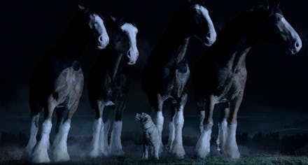 This guy loses his dog every damn year. Fortunately, the Clydesdales are there to rescue him. We're still unclear about the connection between beer and draft horses, but it's a strategy that seems to be working for Budweiser — the Clydesdales have appeared in 23 Super Bowl commercials commercials since 1986.