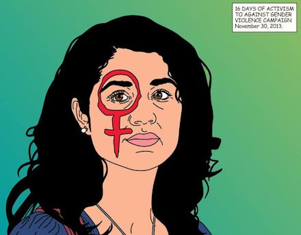 The project began as Acha-Kutscher's way of contributing to the anti-corruption 15M social movement in her home country of Spain, but soon grew to encompass other emerging movements as well. Now, Acha-Kutscher told Mic, she derives her subjects from "the daily press news on protests where the woman is the protagonist." Her art has been printed on tarps and exhibited in public spaces all over the world.