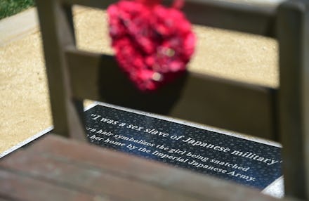 At issue is the matter of so-called "comfort women" from occupied nations like China, South Korea and Philippines who were forced into prostitution for the Japanese military during World War II. Some Japanese academics and government figures have asserted that the women were not subject to official government coercion.