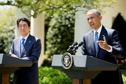 With Japanese Prime Minister Shinzo Abe standing next to him in the Rose Garden at the White House, Obama spoke uninterrupted for 14 minutes about the situation in Baltimore, reserving especially harsh words for the groups and individuals responsible for the riots and looting of West Baltimore storefronts and businesses.