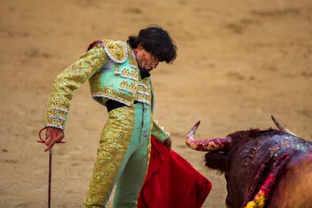 Eventually, the bullfighter or matador (who has not been stabbed or tortured by anyone) kills the bull in triumphant fashion after a few desperate charges by the dying animal. All told, around 250,000 bulls are killed purely for sport every year.