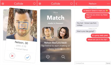 "Initially l thought Collide could be an answered prayer for millennial Christians who are either sick of Tinder, like me, or are afraid to use Tinder, Grindr or other dating apps out of fear of being labeled as someone who doesn't take God or their faith seriously," Melissa, a 26-year-old evangelical Christian, told Mic.