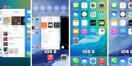 Apple unveiled iOS 9, its new mobile operating system, at the annual developers' conference Monday. While the new OS won't be released in beta form until July (and a final release in the fall fall), it's available to registered developers — who are, of course, posting their discoveries to reddit and Twitter. We added iOS 8 screenshots for side-by-side comparisons that show some of the key changes coming when iOS 9 goes public.