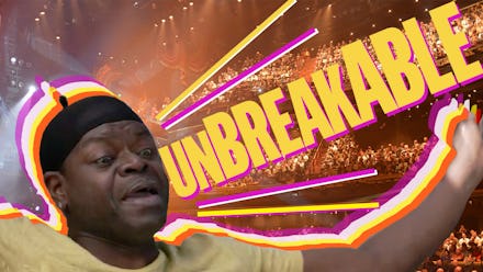 In the sequence's highlight moment, as a Bed Intruder-inspired character sings out the word "Unbreakable!" we see a young girl fall face first into the pavement. Star Jane Krakowski's name flashes above it in bright pastel colors. The jittery America's Funniest Home Videos feel of the clip, which catches us laughing at an obviously inappropriate and painful situation, perfectly encapsulates Fey's series, which finds humor in the darkest of situations.