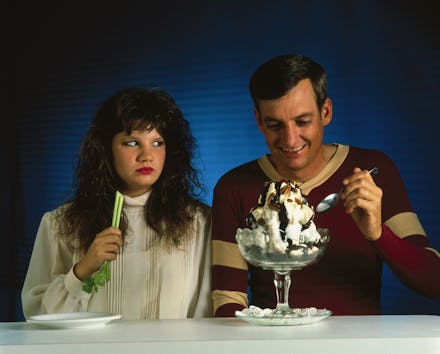 "Sometimes if my craving is strong, I'll have a milkshake and just not tell him," one 28-year-old dieter told Mic of his tendency to hide private moments of indulgence from his boyfriend, so as not to destroy morale in their shared fitness plan. "Because I know that if he told me he had a milkshake, I'd yell at him."