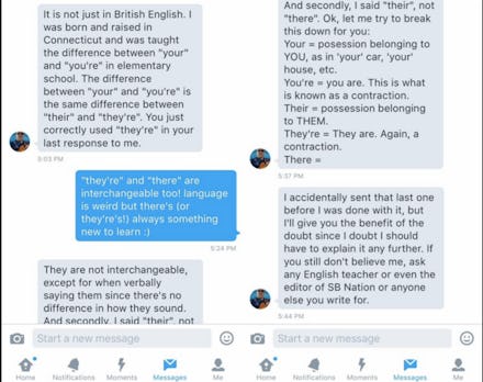 That said, it can be fun for women to screw with dudes who feel the need to police and correct the things they say. That's what sports writer Claire McNear decided to do when a reader made it his mission to grammarsplain to her on Twitter, sending her a series of finger-wagging messages teaching her the difference between "you're" and "your."