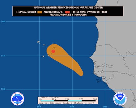 Fred was centered thousands of miles from the United States, making it highly unlikely that the storm would reach American shores. "A review of the records back to the mid-1800s shows that only once has a storm been within 100 miles of where Fred is expected to go and reached the United States," News 13 reports. "Bottom line, we are not concerned with Fred making a U.S. impact."