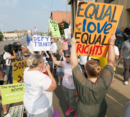 The ceremony was months in the making. After the Supreme Court's decision in June legalized same-sex marriage in Obergefell v. Hodges, most clerks around the country began issuing marriage licenses. However, a few, like Davis, refused, citing religious beliefs. After weeks of denial, the American Civil Liberties Union sued Davis, who was ultimately jailed for contempt of court but has stood steadfast in her belief. Her deputies began issuing the licenses, over her objections, in her absence.