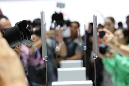 Attending an Apple launch is Silicon Valley's version of the Running of the Bulls, only the charge isn't full of angry, snorting animals. This pack is made up of adherents — in some way or another — to the Cult of Apple. Pushing, clicking, tweeting and gawking, this herd is here for pretty gadgets and middle-aged men in dad jeans and button-down shirts.