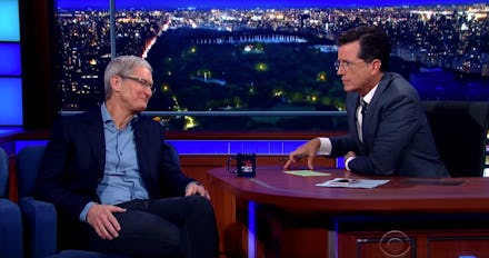 On Tuesday night, Apple CEO Tim Cook paid a visit to the Ed Sullivan Theater in New York City to chat with The Late Show host Stephen Colbert.