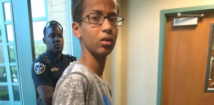 "We have no information that he claimed it was a bomb," a spokesman from the police department in Irving, Texas, told the Dallas Morning News. "He kept maintaining it was a clock, but there was no broader explanation." He was led out of school in handcuffs by a pair of police officers and fingerprinted at a juvenile detention center before being released.
