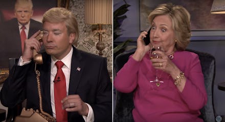 "Congratulations, you're speaking to Donald Trump," said Fallon. "How are you Hillary? I haven't seen you since my last wedding."