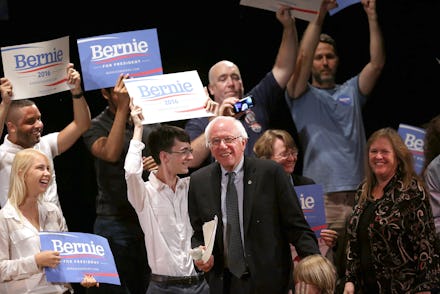 There was no shortage of electricity at the Vermont independent's fundraiser and rally on Friday at the Town Hall Theatre in midtown Manhattan, where a packed auditorium frequently chimed in to tell Sanders how much they loved him. On this occasion, the hometown candidate — he was born and grew up in Brooklyn — returned the favor. "I love you, too," he said with a grin.