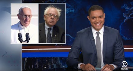Noah poked fun at heights of pope-mania that included specialized pope emojis and also noted the anti-poverty crusading pontiff reminded him of "a young Bernie Sanders." Noah, however, seemed to take the most joy in Francis' car, a Fiat, which met him at the airport and was surrounded by a much larger caravan of SUVs from his security detail.