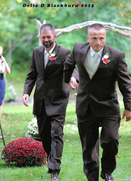 Emotions typically run high at weddings, but one tear-jerking ceremony last weekend took the cake. At a wedding in Lorain County, Ohio, Todd Bachman, father of bride Brittany Peck, paused midway through the ceremony to invite Peck's stepfather, Todd Cendrosky, to accompany him down the aisle.