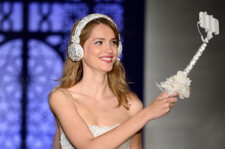 The jarring sight of a bride in a floor-length gown with the tech accessory, not to mention glittery headphones, was obviously good publicity (and probably resulted in some interesting runway shows). But as it turns out, people are actually buying it: A representative for Reem Acra told the New York Post that its New York boutique is out of stock of the selfie sticks.
