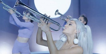 "Focus" shows Grande with silver hair, dancing with a group of backup dancers and playing the trumpet. Although it may be a Grande fans haven't seen before — she is known for her voluminous brunette locks — some critics say the video was underwhelming for her return to music.
