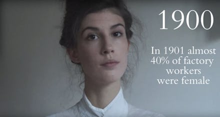 Her video, titled "Real Women — Beauty Through the Decades the Realistic Way," demonstrates a stereotypical makeup-and-hair look for each decade, like many of the viral "100 Years" videos do. Then she switches to what an non-privileged, working woman would have been experiencing at that time.
