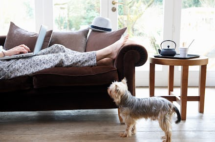 Or you can slip on something a little more, dare we say, political? Like this sweater plastered with a shirtless Canadian prime minister Justin Trudeau riding a moose. As for pants, you can either 1) not wear them or 2) slip on the comfiest sweatpants you own — which, if you're in your childhood home, may be the ones you bought after gaining 15 pounds your first semester of college. Remember: There's always a silver lining.