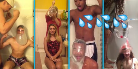 If done correctly, the condom is supposed to retain the water and enclose the person's head like a tiny rubber aquarium. If done incorrectly, it will — you guessed it — break and send a slush of water in all directions. (There's a reason all these people are wearing their undergarments and sitting in showers.)