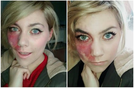 After posting the images, Harford ended up talking about her makeup techniques and favorite products, along with what it's like to live with such a visible birthmark on her face. Most people think it's a bruise, she said, and she's not self-conscious about it at all.