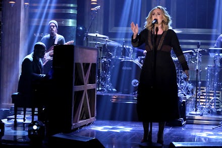 When Adele sings "Hello," her first release from 25, in front of an audience, it becomes immediately clear the world has been listening to the British vocalist on repeat since the song dropped. The 27-year-old songstress took to the U.K.'s X Factor stage on Sunday night to perform the single during the show's finale, as fans sang along, cheering and posting photos and videos online throughout the performance.
