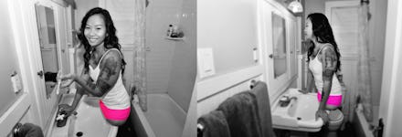 The photo series is called "Everyday (Un)Altered." Shot by photographer Robert Parrish, the images showcase Sesser going about casual, everyday things, like brushing her teeth or reading a book. In others, she's just relaxing.