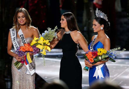 What a fiasco. During the annual Miss Universe pageant on Sunday night, American comedian and pageant host Steve Harvey fumbled hard when he mistakenly announced Colombian contestant Ariadna Gutierrez Arévalo Miss Universe on live TV even though she was actually the runner-up. Not seconds later, Harvey realized his mistake, saying, "I have to apologize. The first runner up is Colombia. Miss Universe 2015 is Philippines." Former Miss Universe, Paulina Vega, awkwardly took the crown from Arévalo and crowned Pia Alonzo Wurtzbach instead.