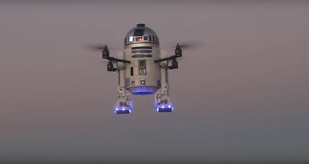 YouTube user and Star Wars fanatic Don Melara geeked out and created what he says is the world's first flying R2-D2 drone, "by the fans, for the fans." Melara released a YouTube video in November before Star Wars: The Force Awakens hit theaters. Melara installed the R2-D2 figure with wings, a camera, LED lights and a speaker to transform it into a mean Jedi droid flying machine.
