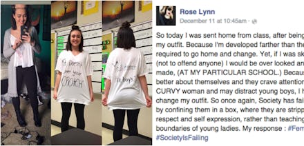 Rose echoed that point in her post. "Because I look like a CURVY woman and may distract young boys, I have to miss class and change my outfit," she wrote.