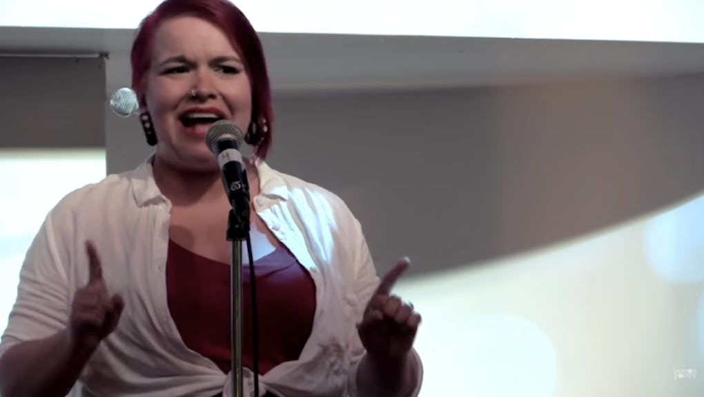 Melissa Newman-Evans, a graphic designer and poet, performed a poem entitled 9 Things I Would Like to Tell to Every Teenage Girl at the 2015 National Poetry Slam in August.