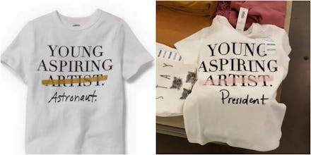 That's the situation Old Navy finds itself in after Twitter users discovered a children's T-shirt displaying the slogan "Young Aspiring Artist" with the word "Artist" is crossed out — and replaced with the words "Astronaut" or "President."