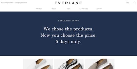 Here's the setup: For every item on sale, Everlane has slashed the original price and is offering three alternatives. Hover over the lowest price, and you're informed it "only covers our cost of production and shipping."