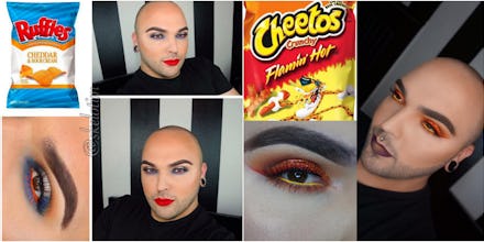 "How I choose my snacks is whatever is the most delicious to me, and whatever has the best color combos!" Tim told Mic via email. "These snacks have amazing colors, and one day I thought, well hot damn, these colors would look good on my face. So I went with it and did a hot Cheetos look and everyone loved it!"