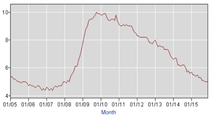 The upward trending volume of student debt becomes more worrisome in light of unemployment rates in the United States. The good news is that, in recent years, the overall rate of unemployment in the United States has steadily declined from 9.9% in December 2009 to just 5% at the end of 2015, according to the Bureau of Labor Statistics. The bad news is that according to the Economic Policy Institute, the rate of unemployment among young graduates is 7.2%, despite a recovering economy.