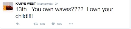 At first, West responded by saying, "All respect to Andre Harrel and Max B #Waves," but was met with skepticism by Khalifa. Then things really heated up as West tweeted out nearly 20 numbered tweets aimed at burning Wiz Khalifa, including trying to call his phone and saying that the "See You Again" artist wouldn't even have a child if it weren't for West.