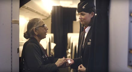 Directed by award-winning Neeraj Ghaywan, the 6-minute short film shows a young white flight attendant, Helena, on her first trip to India. She befriends an elderly Indian woman on the 10-hour flight from the United Kingdom to the subcontinent, as Helena aids the passenger with everything from putting on the woman's socks to providing emotional comfort.