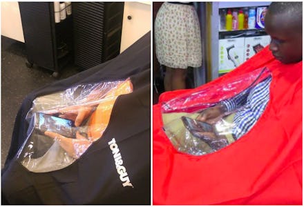 Seeing how remarkably simple this invention is, you may be bubbling with rage that this same cape isn't at your favorite salon. But it's out there, perhaps coming to a hair cuttery near you soon. In 2015, a similar image was posted to Reddit with the caption, "My barber got new capes so you can text while getting a haircut." A company called iCapes is also apparently out there making them, having gotten started on Kickstarter.