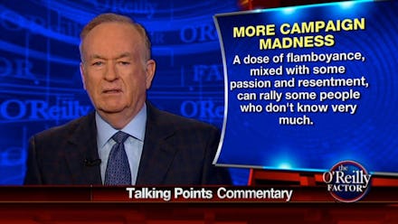 "Getting ill-informed folks to follow you isn't all that hard," O'Reilly continued. "A dose of flamboyance mixed with some passion and more than a smidgen of resentment can rally some people who don't know very much."