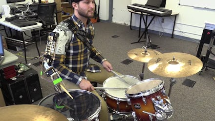 "The drummer plays whatever he wants, and the arm accommodates," Weinberg told Mic. "If the drummer plays slower, the arm plays slower. It can accompany, it can do call-and-response. It responds to you when you play."