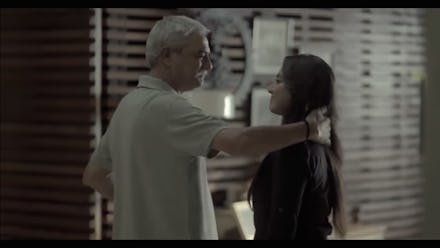 He apologizes to her for not having set a better example regarding gender roles and family duties. "I never helped your mother either," the father's voiceover says. "And what you saw, you learned. Your husband must've learned the same from his dad."