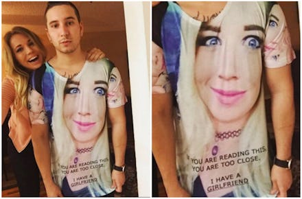 In a picture that has now been viewed more than 2 million times in just nine days on Imgur, designer Michelle Snyder made her boyfriend, Derek Kary, a customized T-shirt with her face printed all over it. Why? You'll want to look toward the bottom.