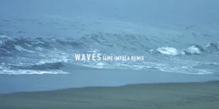 Shortly after Tame Impala remixed Miguel's "Waves" for the artist's latest EP, titled Rogue Waves, the Australian rock band's frontman Kevin Parker joined forces with the R&B artist for a creative, new music video. The short video is shot entirely on a beach — and lasts only 1 minute, 35 seconds — but it's nostalgic feel and artistic visuals provide all the entertainment one needs.