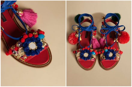 The colorful sandals, which are fashioned with pompons, mirrored embellishments and gold, come straight from the brand's Disney princess-influenced Spring 2016 runway. But now, Dolce & Gabbana's fairytale is looking more like a nightmare.