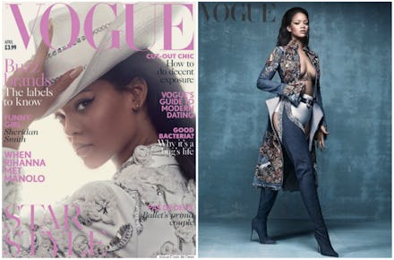 In an interview with Vogue U.K., which was released Thursday, Rihanna announced a collaboration with Manolo Blahnik for a line of all-denim-inspired high heels. (Very on-trend, Riri.) She landed a spot on the magazine's cover, which is nice, but it's the spreads inside where she reveals her favorite shoes from the collection.
