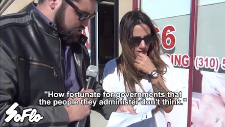 SoFlo hit the streets of Los Angeles armed with a list of Adolf Hitler quotes he falsely credited to Trump in a video posted Tuesday that's garnered more than 45 million views.