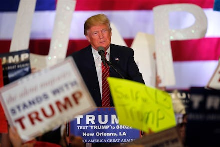 Throughout Trump's appearance, he silenced his opposition by looking out into the crowd, pointing at people making noise and asking, "Friend of foe?" When he identified potential protesters, he'd signal Louisiana police officers to eject them from the rally.